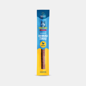 Hau-Hau Champion Mainio Herkkutikku Kana on herkullisen pehmeä ja maukas tuliainen koirakaverillesi. Vehnätön herkkutikku sopii hyvin niin koiran herkutteluhetkiin kuin palkaksi harrastuksiinkin. Mainio herkkutikku pysyy pehmeänä ja se on helppo pilkkoa pienempiin osiin vauhdikkaissakin tilanteissa.