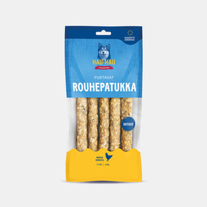Hau-Hau Champion Purtavat Rouhepatukka Kana on vähärasvainen ja viljaton puruluu, johon on lisätty ripaus maukasta kanaa. Tämä murea puruluu saa nirsommankin koiran innostumaan! Rouhepatukka sopii erinomaisesti keskivahvalle ja pienelle puruvoimalle. Viljaton ja vähärasvainen puruluu on oiva valinta esimerkiksi seniorikoiralle.Puruluiden pureskelu auttaa puhdistamaan koiran hampaita mekaanisesti. Puruluun kaluaminen voi olla myös oiva apu koiran stressin lievittämiseen tai vilkkaan koiran rauhoittamiseen. Lue lisää pureskelun hyödyistä koiralle.Vastustamaton purtava on jokakoiranoikeus