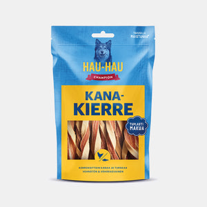 Hau-Hau Champion Kanakierre on herkullista turskaa ja mehukasta kanaa yhdistävä koiranherkku. Lihaisa ja pehmeän taipuisa makupala on kätevä palkkio koirankoulutuksessa. Luontaisesti vähärasvainen herkkupala sopii myös painonhallintaa tarvitseville koirille.