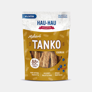 Hau-Hau Mehevä Tanko Kanaa sisältää jopa 88 % tuoretta lihaa. Tangot on muotoiltu lihaisasta taikinasta, johon on lisätty ripaus marjapuristetta. Tuloksena syntyi kuin kotiuunissa paistettu makupala, jonka huumaava tuoksu houkuttelee paikalle kaikki perheen hännänheiluttajat.