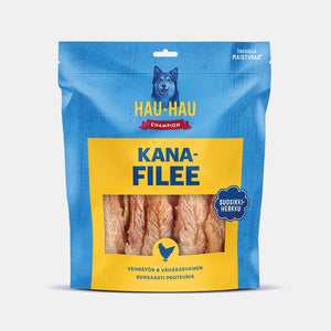 Hau-Hau Champion Kanafilee on hemmottelua joka puraisulla. Aidosta kananrinnasta valmistettu makupala on vähärasvainen ja mehevä herkku, joka soveltuu herkutteluhetkiin ja palkitsemiseen.