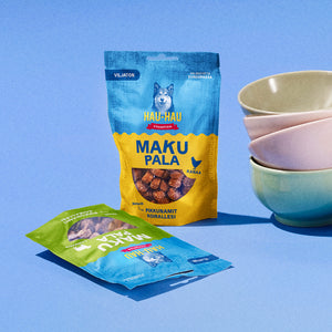 Hau-Hau Champion Viljaton Makupala kana on herkkävatsaiselle koiralle sopiva koiranherkku. Makupalamme ovat luontaisesti gluteenittomia ja täysin viljattomia.